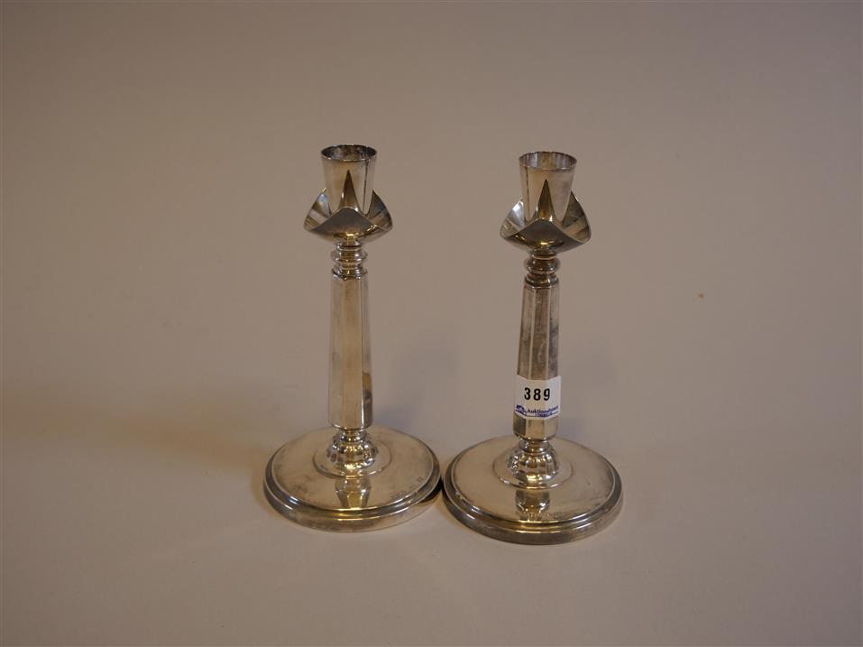 389. LJUSSTAKAR, 1 par. Kontr.S. H. 17 cm. Brutto vikt 364 gram.
