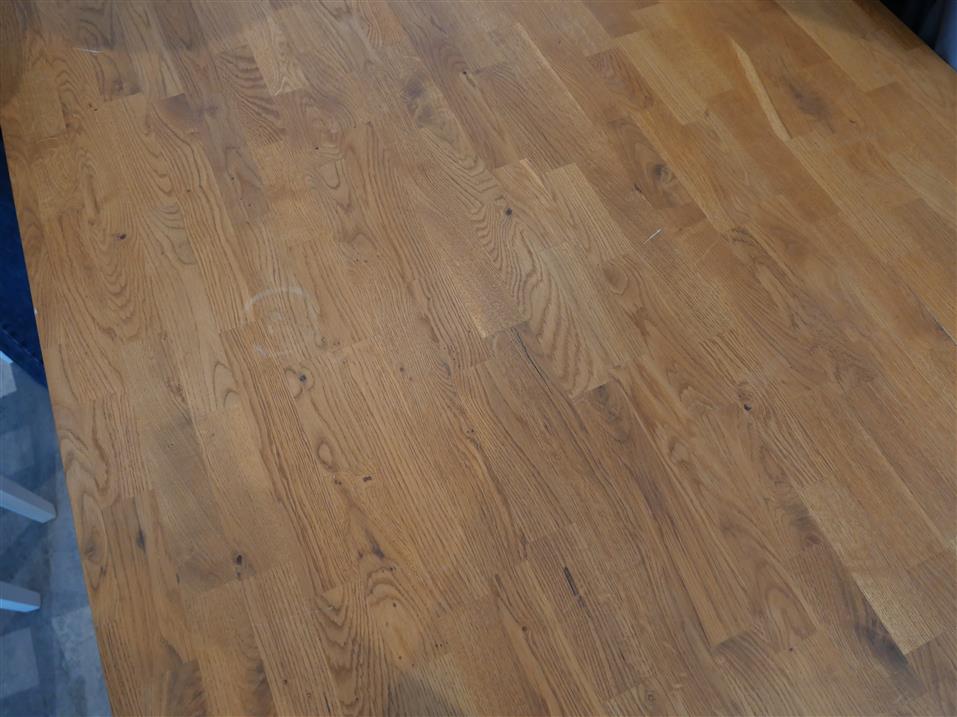 302. MATBORD M ILÄGGSSKIVA. Ek. H. 75 cm L. 178+49 cm cm B. 99 cm. Skivan med vattenringar samr repor