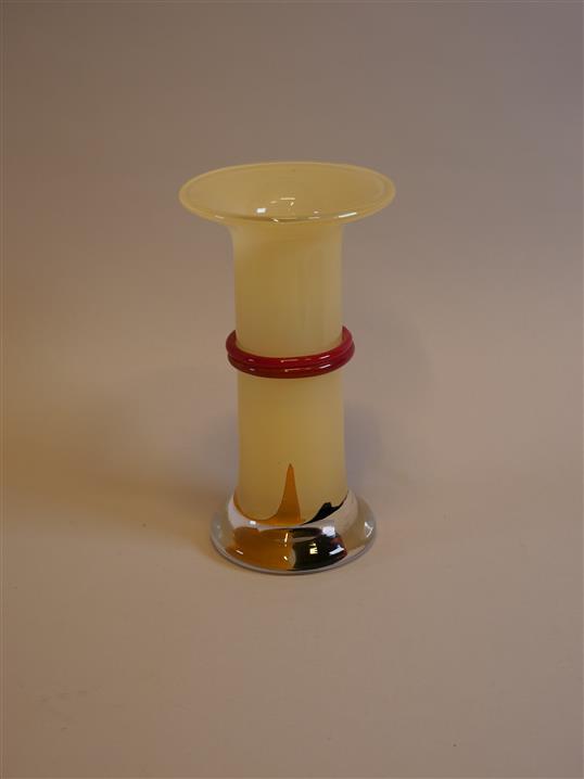 350. MONIKA BACKSTRÖM. Vas, glas. Gula o röda toner, påklippt dekor. "Gobi". Signerad: Kosta Boda, M. Backström, 49761. H. 25,5 cm. Diam. 14 cm.