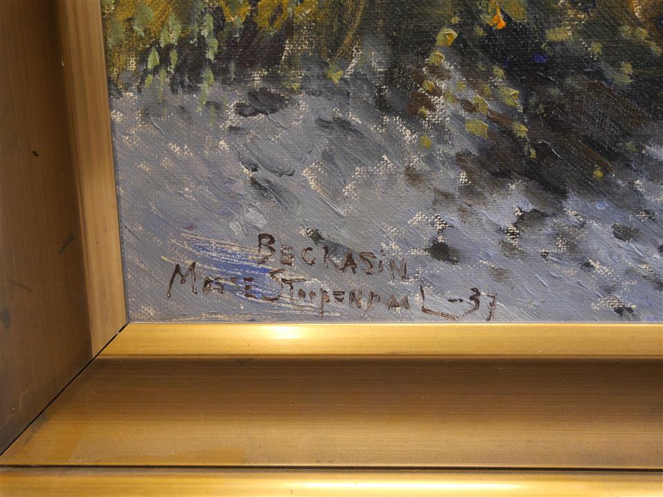 417. MOSSE STOPENDAAL. Oljemålning, sign Mosse Stoopendal 37 "Beckasin" Duk: 38x 46 cm