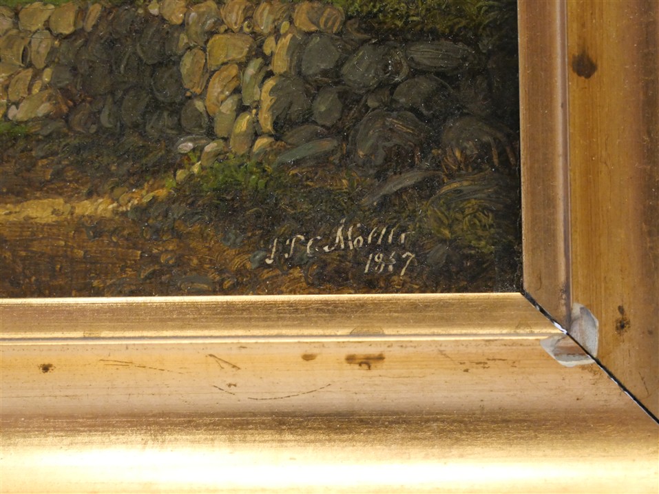 276. OLJEMÅLNING 1800-tal, otydbar. Duk 12,5 x 17,5 cm med krackelering. Ram med lite färgbortfall.