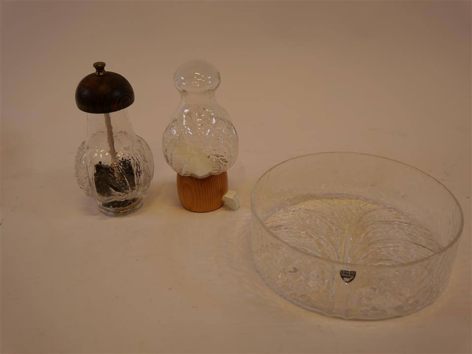 440. ORREFORS. Glasservis , Eden, Lars Hellsten. Mattallrikar 11 st, Assietter 12 st Uppläggningsfat 5 st, smörask 1 st, Skålar 7 st samt 1 st salt o pepparströare samt Vas
