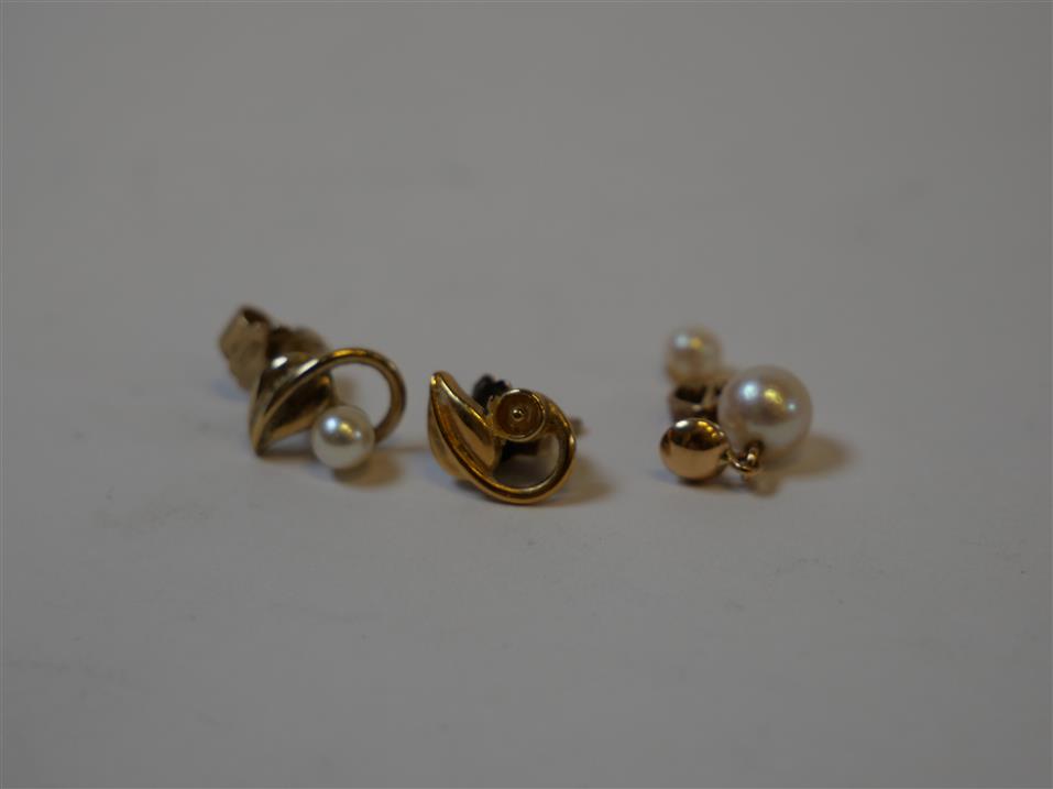388. PÄRLÖRHÄNGE 1 par 18K varav en pärla lös samt ett örhänge med pärla 18K. Bruttovikt 2,8 gram.