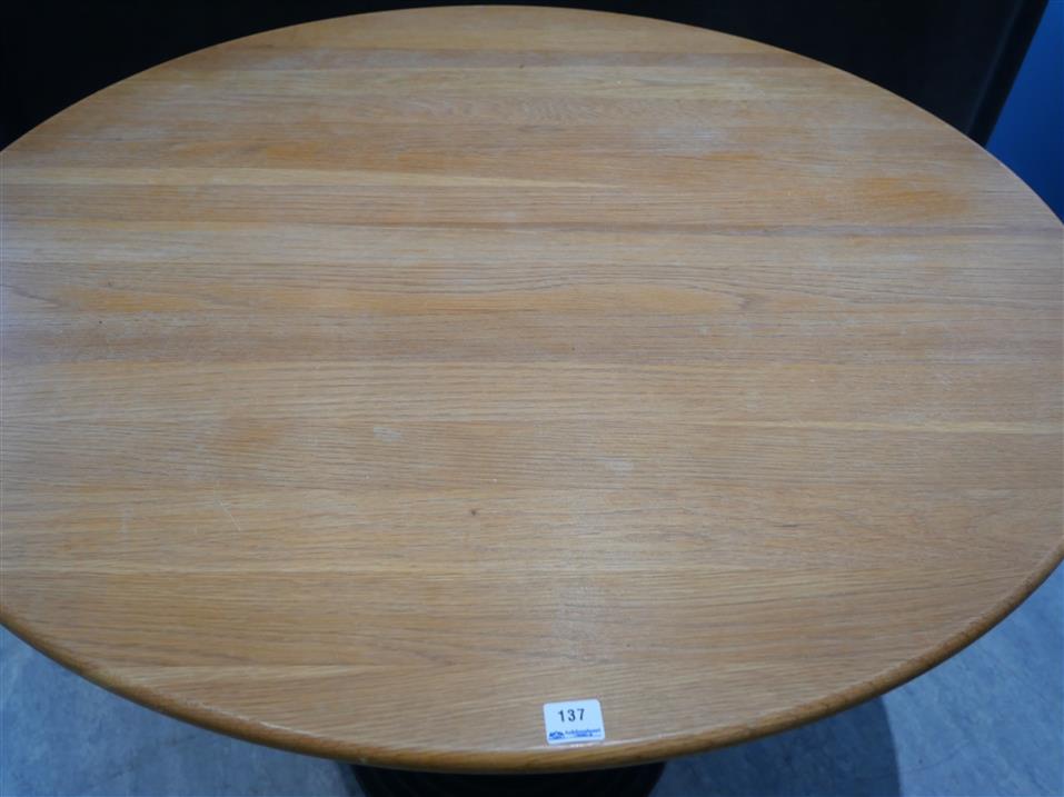 137. PELARBORD Åke Axelsson, gjutjärn och ek. H 72 cm. Diam 90 cm. Etikettmärkt Galleri Stolen.