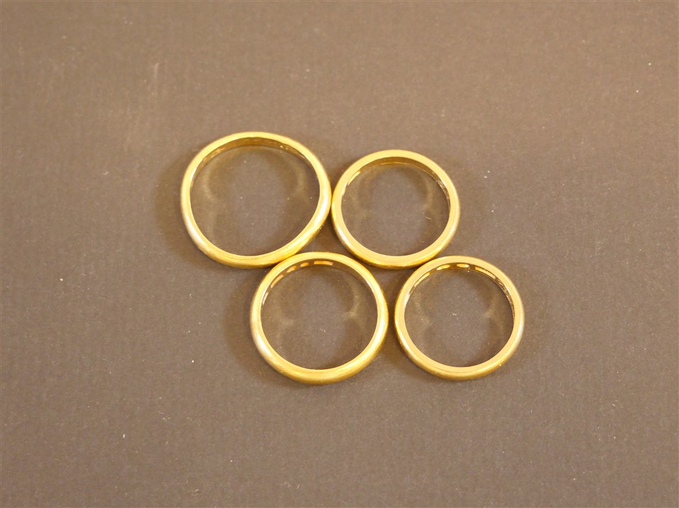 365. RINGAR 4 st, 23K. Vikt 26,9 gram.