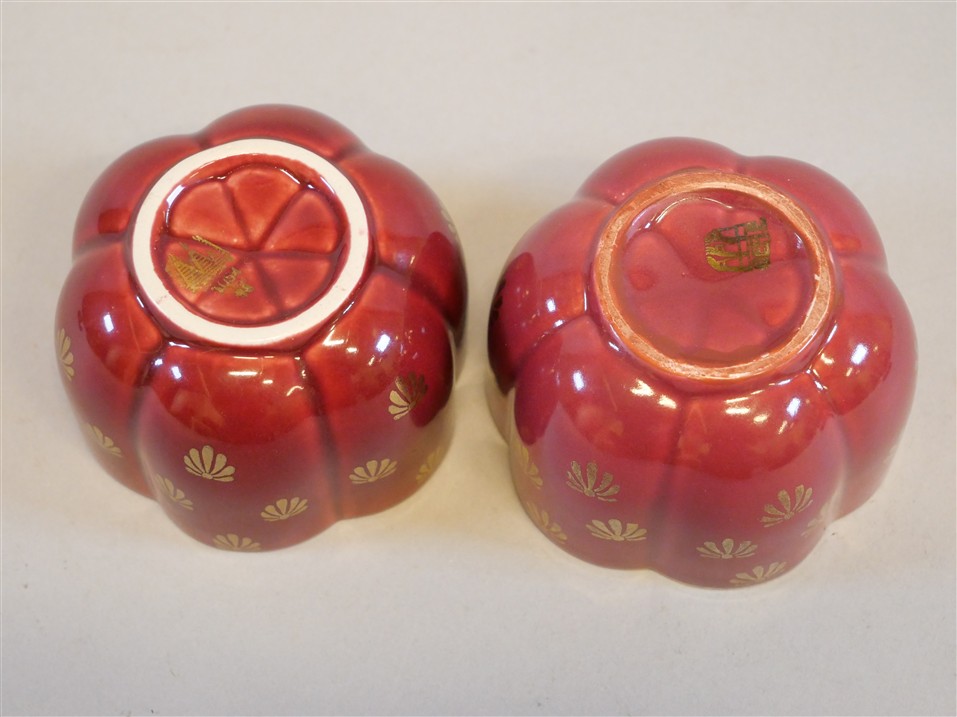 140. RÖD RUBIN Gefle. Lockburkar 2 st H 10 cm.