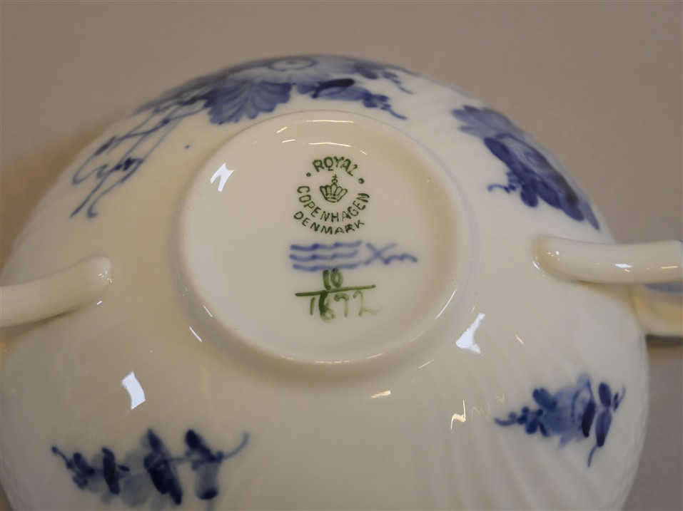 220. ROYAL COPENHAGEN. "Blå blomster". Buljongkoppar 6 st med fat 2:a sort (1872)