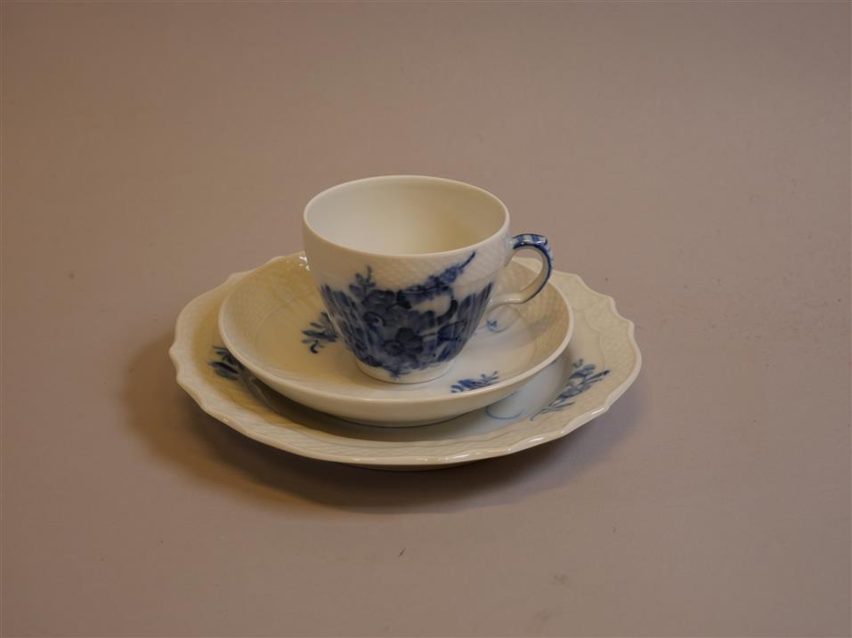 108. ROYAL COPENHAGEN. Blå Blomster, Kaffekoppar 12 st, assietter 12 st, sockerskål och gräddkanna, skål samt fat 2 st