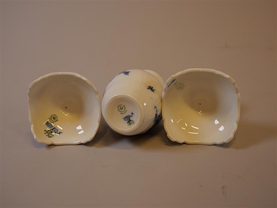 139. ROYAL COPENHAGEN. Blå Blomster. Ljusstakar 1 par H 10,5 cm. Vas H 14 cm.