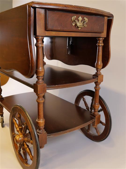 418. SERVERINGSVAGN. H 102,5 cm. L inkl handtag 88 cm. B 46 cm + 31 cm + 31 cm med skada.