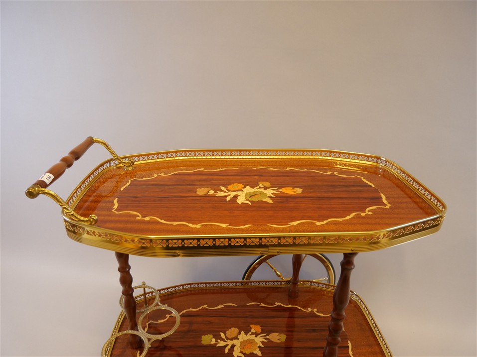 295. SERVERINGSVAGN med mässingsdetaljer och intarsia. H 70 cm. L 72 cm. B 42 cm.