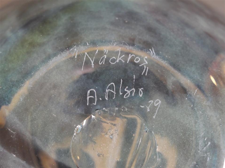 121. SKÅL, signerad: "Näckros". A. Alsiö -89. H. 14 cm. Diam. 15,5 cm.