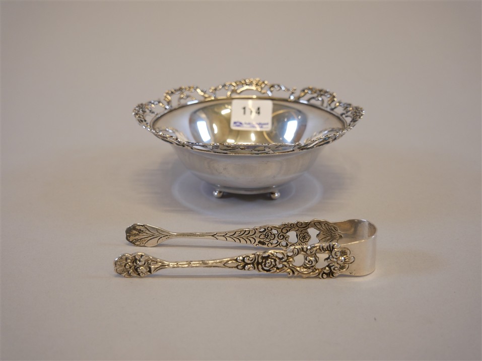 114. SKÅL & SOCKERTÅNG. Silver. Vikt 116 gram.