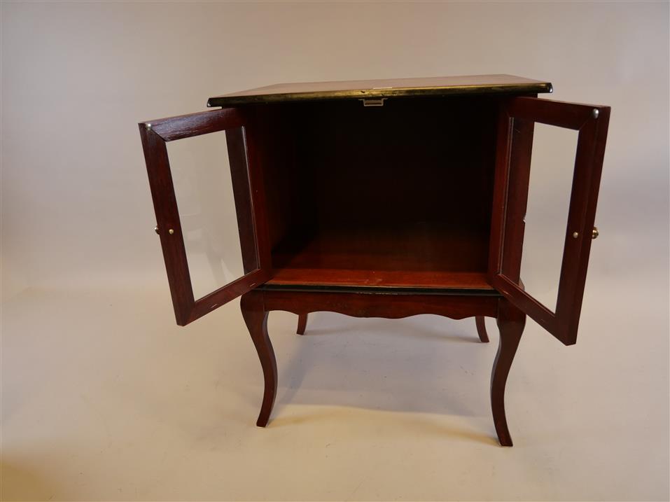 387. SKÅP m glasdörrar. H. 62 cm L. 48 cm Dj. 39 cm