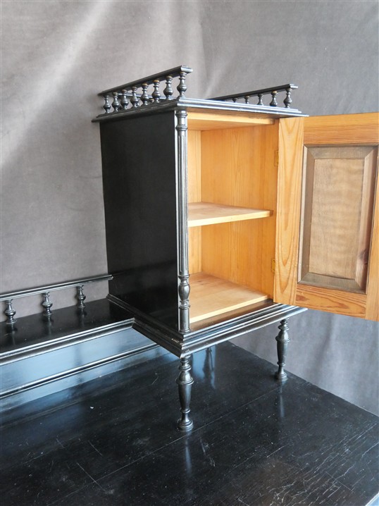 528. SKRIVBORD M UPPSATS, sekelskiftet 1900, svartmålat. H. 140 cm. B. 109 cm. Djup 62,5 cm.