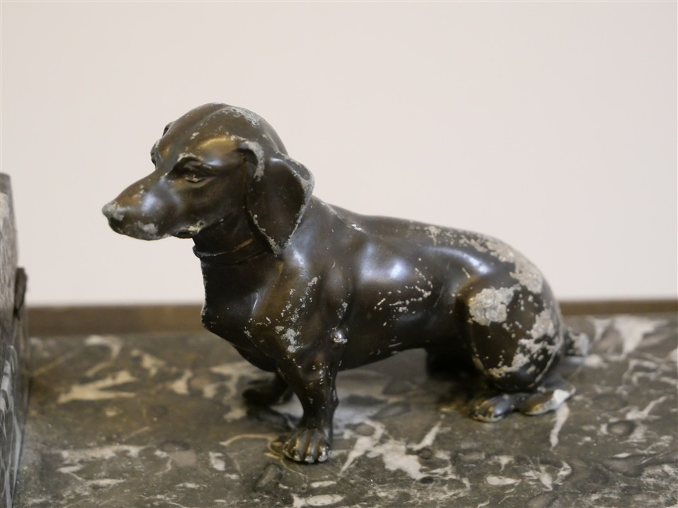 436. SKRIVBORDSUPPSÄTTNING, marmor, 7 delar. Några delar med skador.