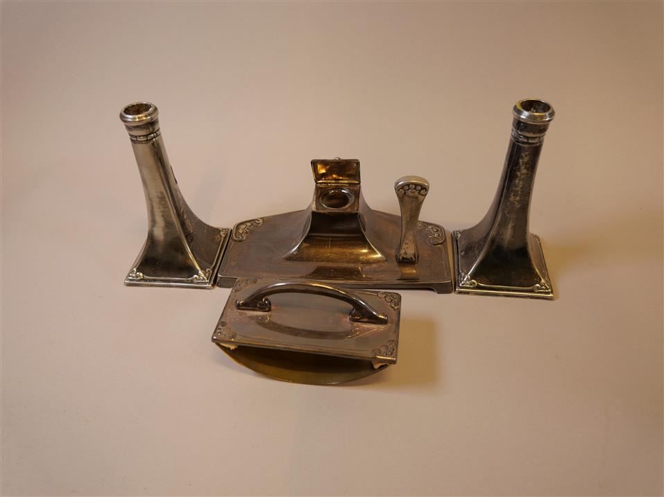 056. SKRIVSTÄLL, VITMETALL. Bestående av 5 delar. mm.