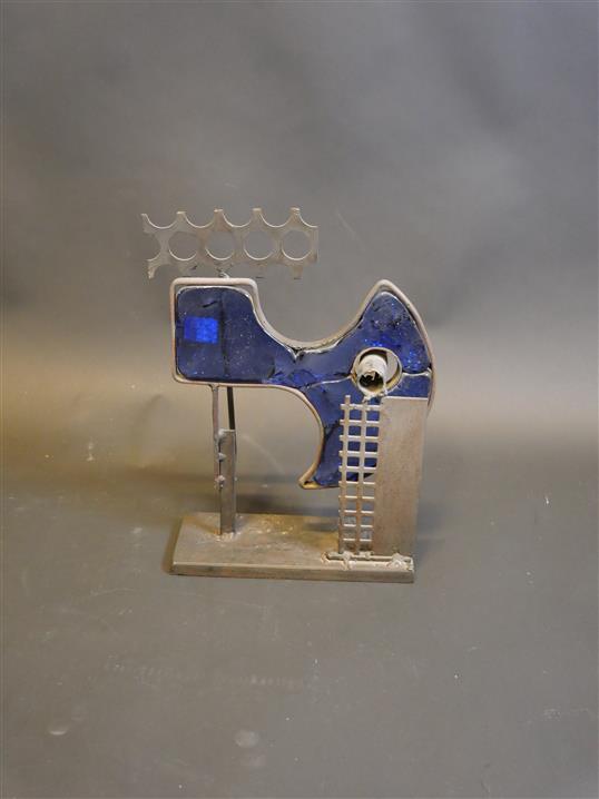 235. SKULPTUR, metall och glas. H. 28,5 cm. B. 23 cm.