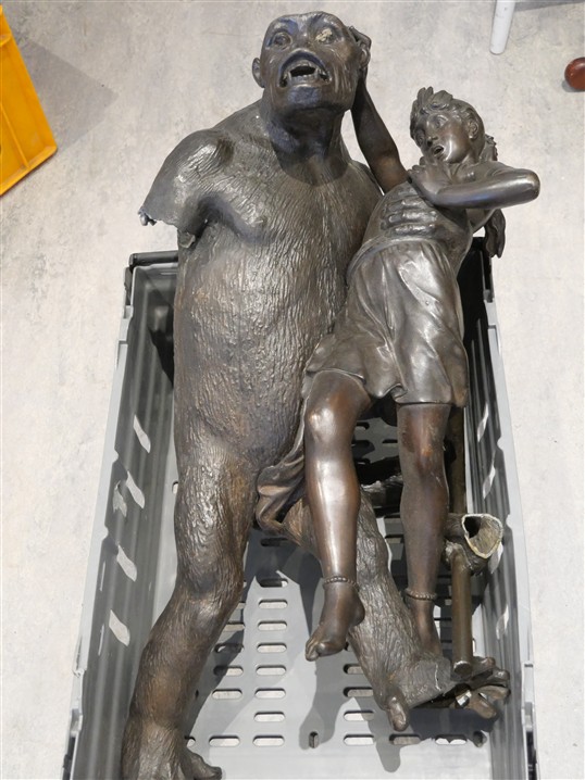 438. SKULPTUR, reparationsobjekt. H 90 cm (Cirkamått inklusive sockel)