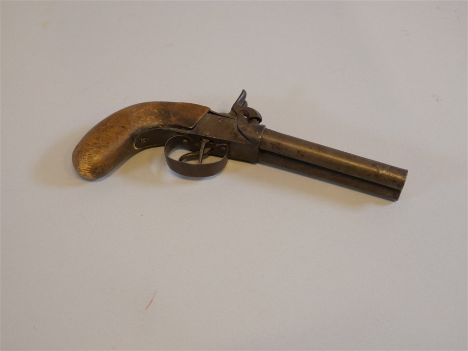 478. SLAGSLÅSPISTOL, dubbelpipig märkt 51. Längd 23 cm.