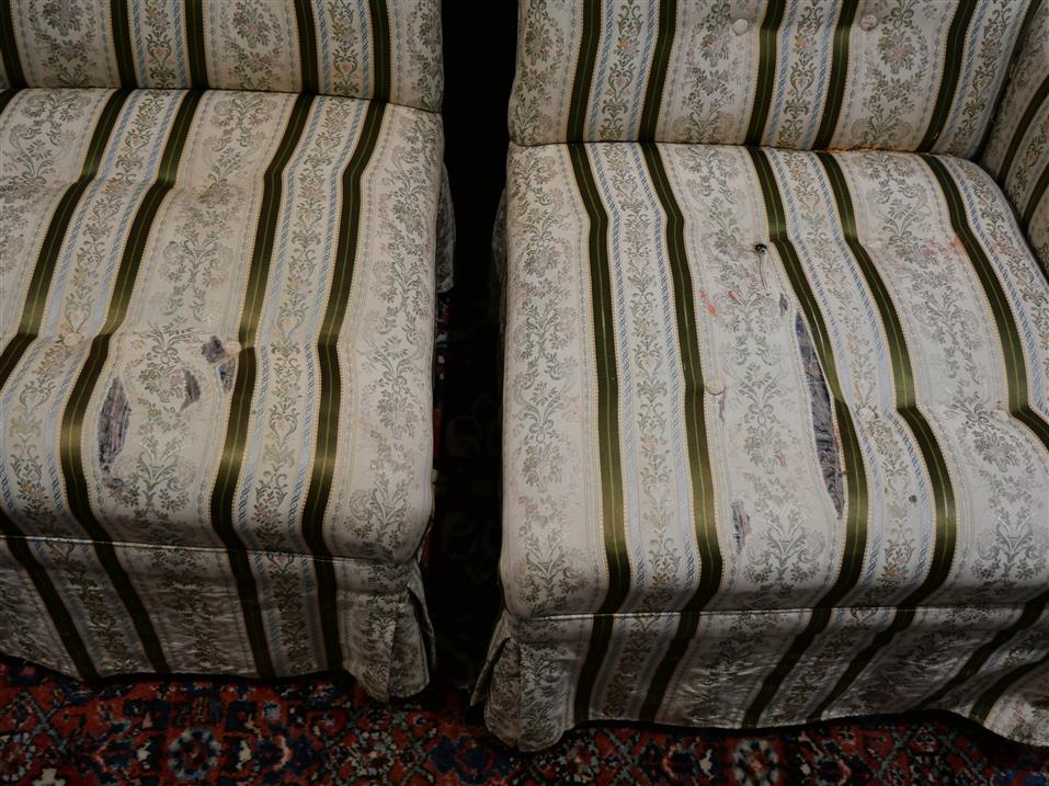 332. SOFFA 2 delad (Fåtöljer 2 st). 1900-talets första hälft, Tyg med revor samt fläckar. Sitthöjd 38 cm