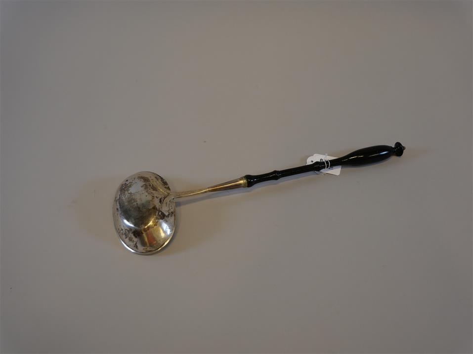 080. SOPPSLEV MED TRÄSKAFT. 1800-tal. Kontr.S. L. 39.5 cm.