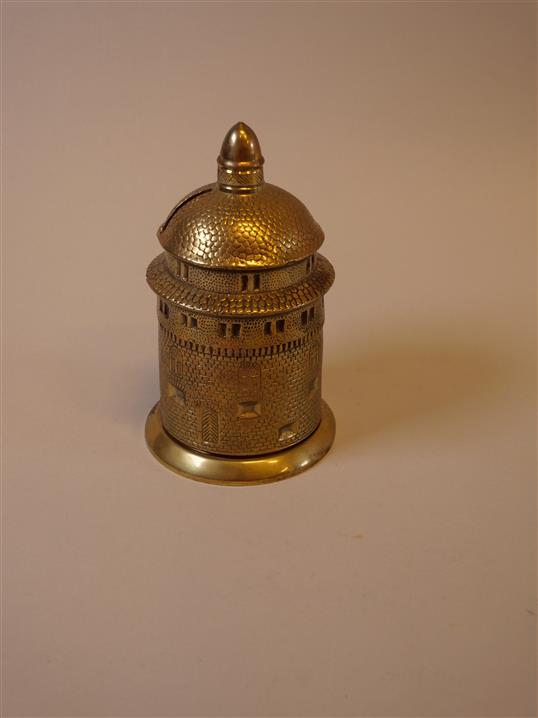 151. SPARBÖSSA. Örebro Läns Sparbank, mässing, skruvlock. H 15 cm.
