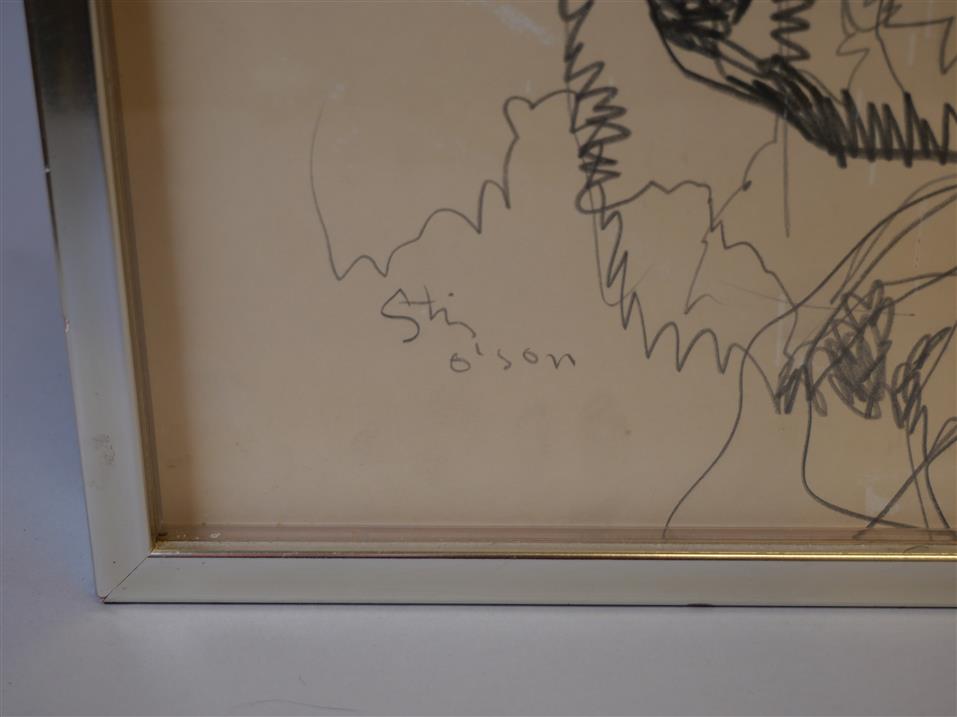 138. STIG OLSON. Tavla, blyerts, sign Stig Olson. Tavlans mått: 68 x105.5 cm.