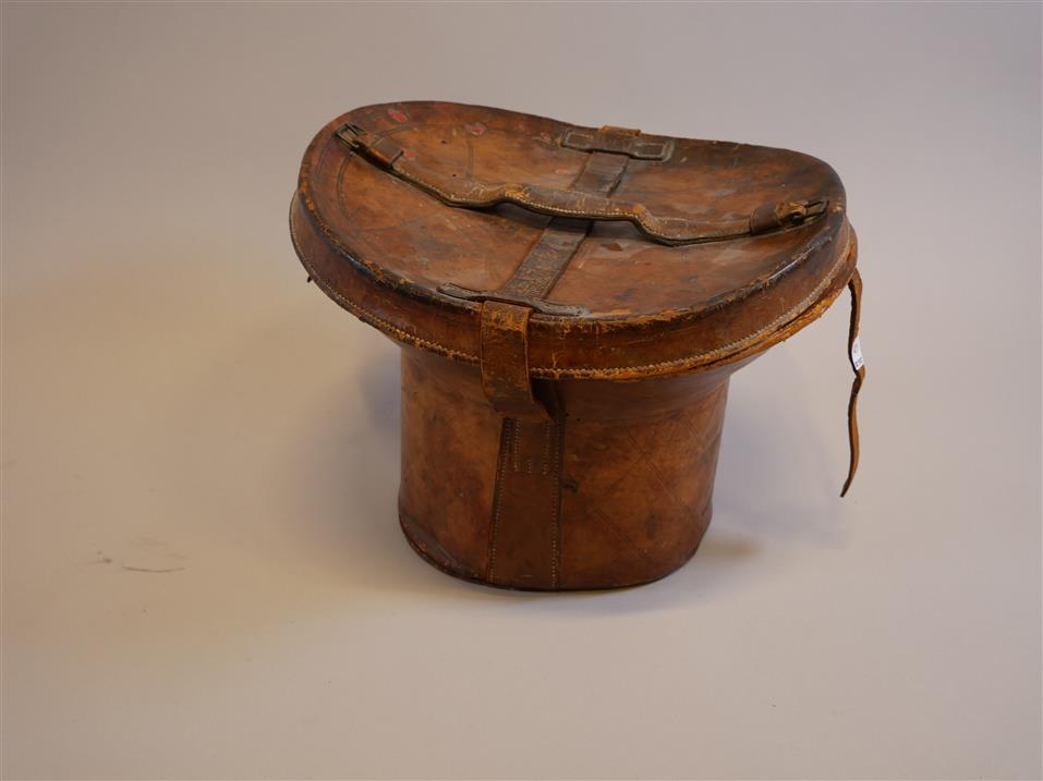 421. STORMHATT London med hattask i läder samt fluga och handskar.