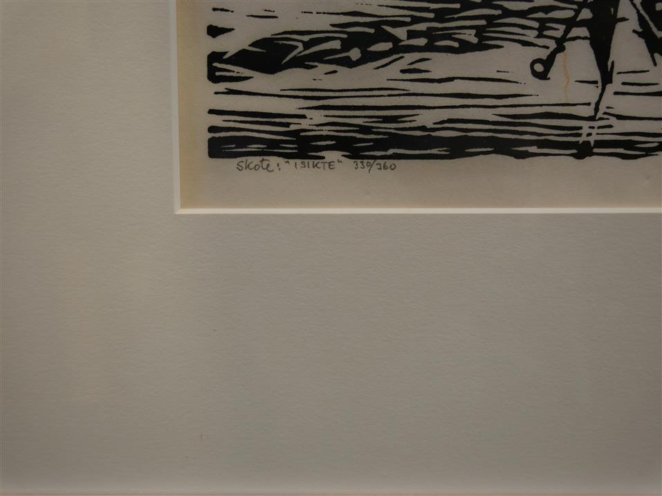 205. SUNE SKOTE. Linoleumsnitt. "I sikte" 330/360. Tavlans mått 36 x 44 cm.