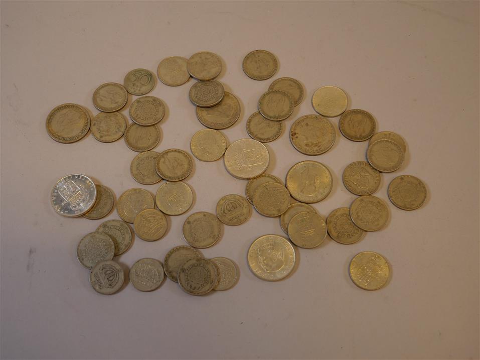 135. SVENSKA SILVERMYNT. 2 kr 1944- (8 st), 1 kr 1942- (35 st), 50 öre 1945- (6 st)
