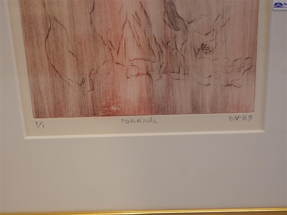 422. TAVLA torrnål sing B.V-89 1/1. Tavlans mått 41,5 x 34 cm.