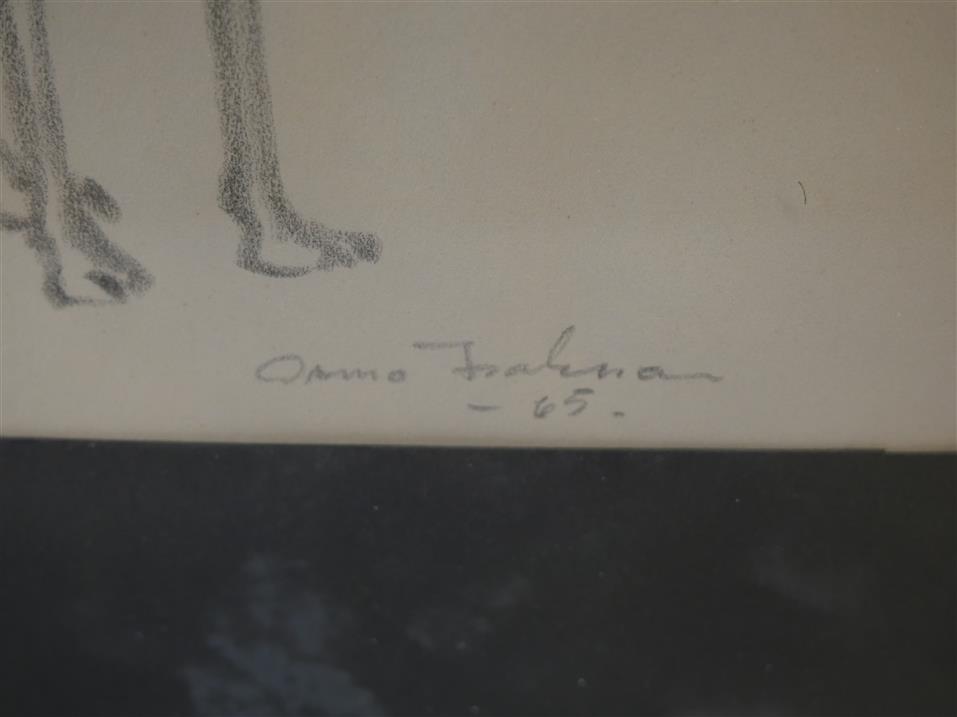 203. TECKNING. Otydbar signatur. Tavlans mått 40,5 x 36 cm.