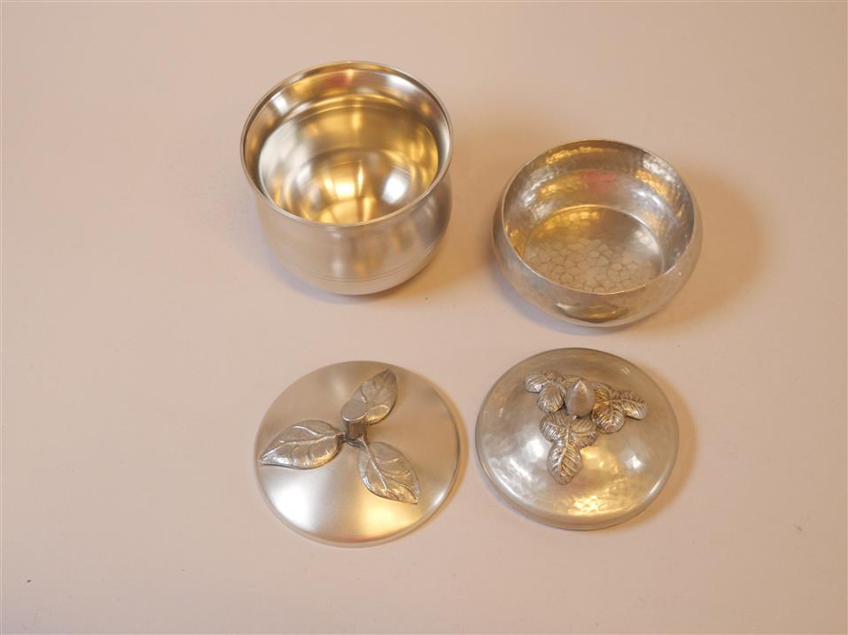 132. TENNBURKAR 2 st. Varav en st stämplad Svenskt Handarbete Tassinari. H. 7,5 cm. resp. 10 cm.