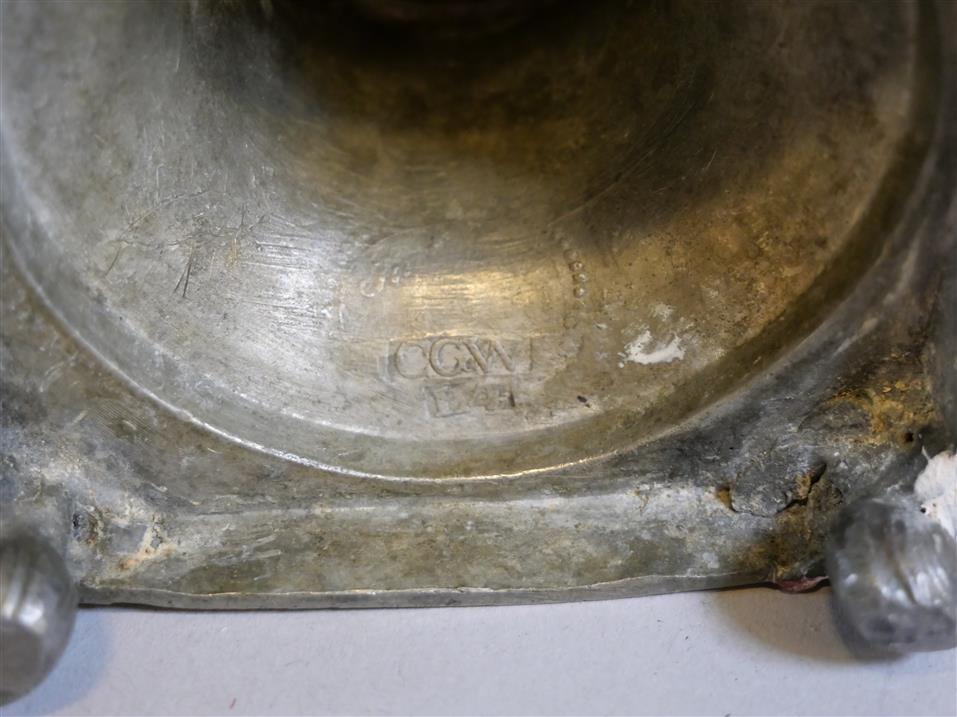 641. TENNLJUSSTAKAR, 1 par. Stämplade CGW, L4. Carl Gustaf Wigholm, Gävle, verksam 1833-1866. Med skador. H. 10 cm.