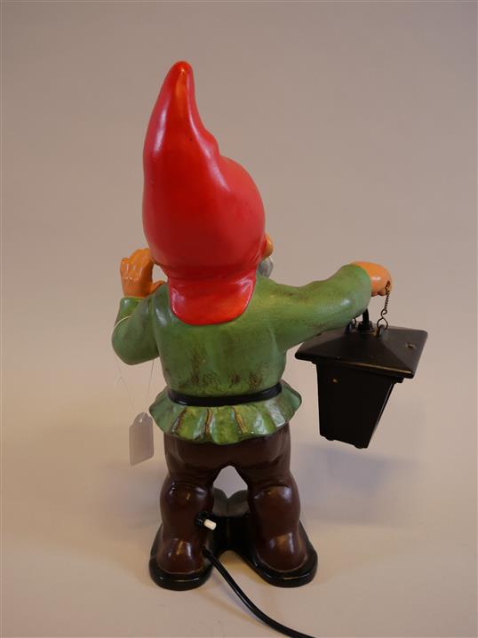 317. TOMTE MED LYKTA. El. Stämplad: West Germany. Troligen Heissner, liten skada på lampan. H. 41 cm.
