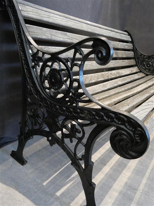 082. TRÄDGÅRDSSOFFA M GJUTJÄRNSGAVLAR. Sitthöjd: 42 cm. L. 125 cm.