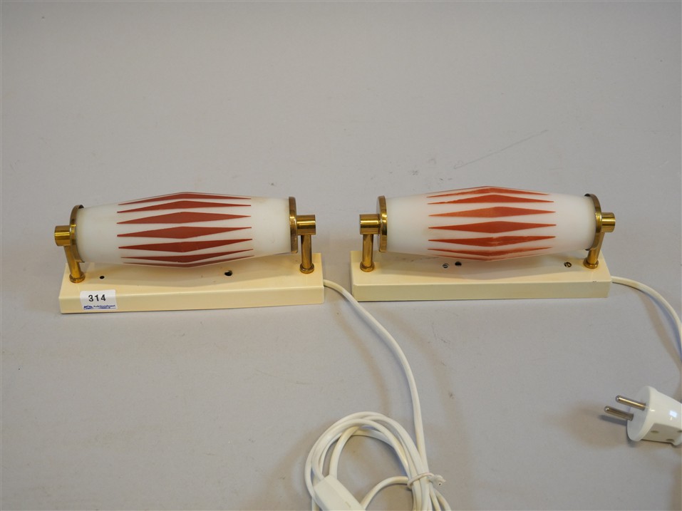 314. VÄGGLAMPOR 1950-tal färgskiftning. H ca 20 cm.