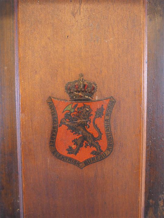 303. VÄGGTELEFON, tidigt 1900-tal. Aktieselskabet Elektrisk Bureau Kristiania Norge. H. 73 cm. B. 24 cm.