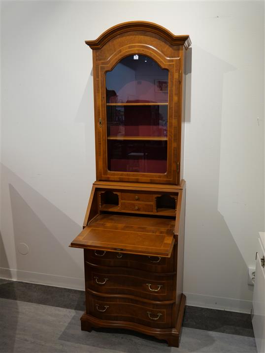 180. VITRINSKÅP med skrivklaff. 1900-talets andra hälft. Fanér. H 192 cm. B 60 cm. Djup med utfällbar lucka 64 cm.