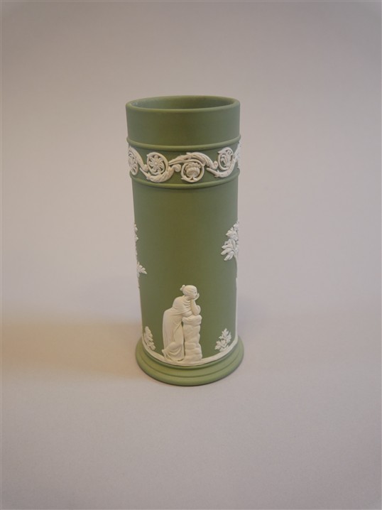 282. WEDGWOOD, England. Ljusstakar 1 par, vas, lockburk, ljushållare och fat.