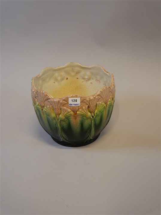 120. YTTERFODER, Rörstrand majolika. Krackelerad. H 17,5 cm. Diam 20 cm. Kaffeskedar 12 st NS.